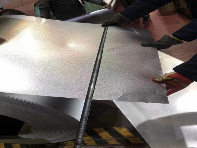 鍍鋁鋅鋼板合金鍍層由約55%的鋁、約43.5%的鋅、約1.5%的硅組成,相對于傳統鍍鋅產品,具有更加優良的抗腐蝕性、耐熱性、熱反射性等特點。鍍鋁鋅板表面鋅花細小均勻,色彩亮麗,表面硬度高,可以涂敷多種顏色的耐指紋半透膜,廣泛應用于家電、建筑、結構、電氣等行業。